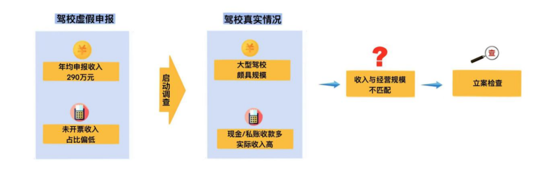 检查人员依法调取该驾校学员名单,并与交管部门驾考数据进行交叉比对。经核对,双方登记信息基本吻合,初步排除虚报学员数量的嫌疑。但当检查人员依法调取驾校账簿凭证、培训合同、银行流水等资料进行逐项核对,却发现企业账面申报收入与合同约定收入、银行实际到账资金不一致,账上确认的收入和实际经营情况对不上。