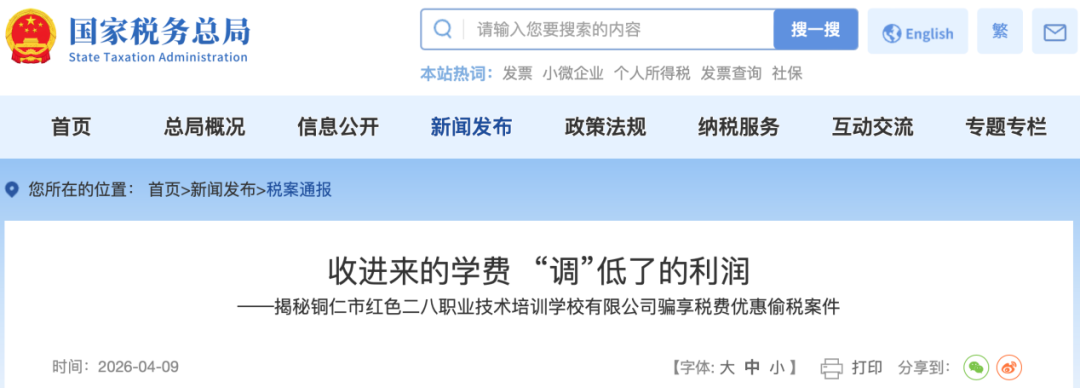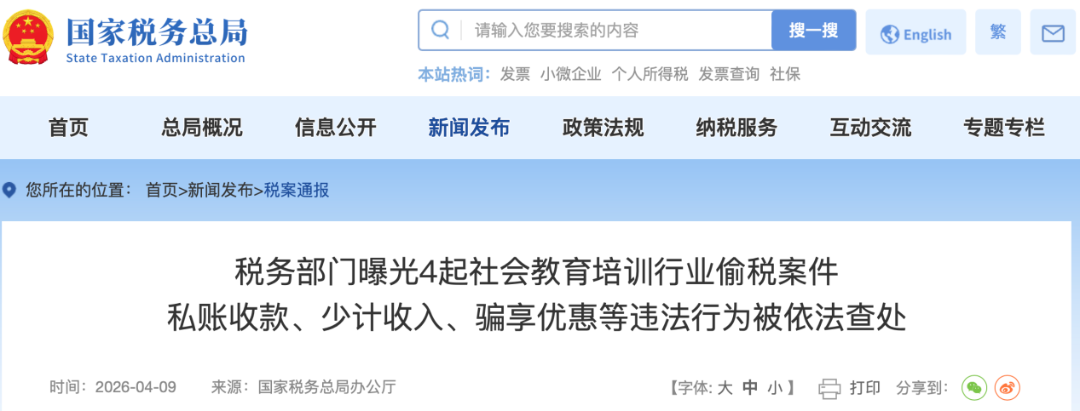 社会教育培训行业作为民生服务领域的重要组成部分,其合规经营直接关系广大消费者合法权益、行业生态与社会公信力。近年来,税务部门认真贯彻落实党中央、国务院决策部署,协同相关部门,依法查处社会教育培训行业偷逃税行为,切实维护法治公平的税收秩序。据统计,2024年1月以来,全国税务部门累计查处社会教育培训机构1185户,查补税费款和加收滞纳金、处以罚款共计2.4亿元,促进了行业规范健康发展。4月9日,重庆、贵州、宁夏、山东等地税务部门公布了依法查处的4起社会教育培训行业偷税案件,分别是:
